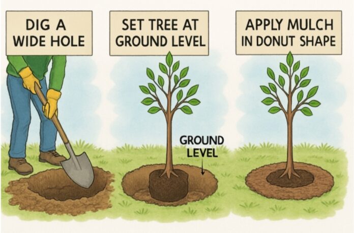 Planting trees correctly is crucial for their long-term health. Ensure you: